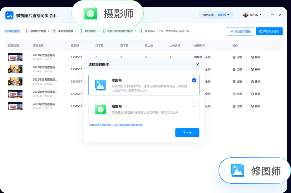 摄影师、修图师多终端使用工具,多权限管理,上传、修图便捷管理