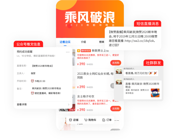 实现直播导购、产品平铺展示、新品发布、商品实时推送,