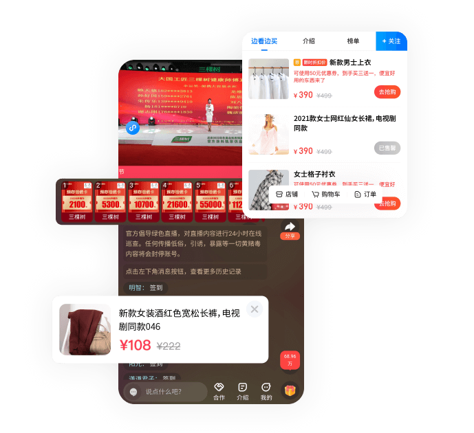 全渠道引流,品牌推广,直播互动营销,加速交易转化,打造线上线下一体化电商直播闭环